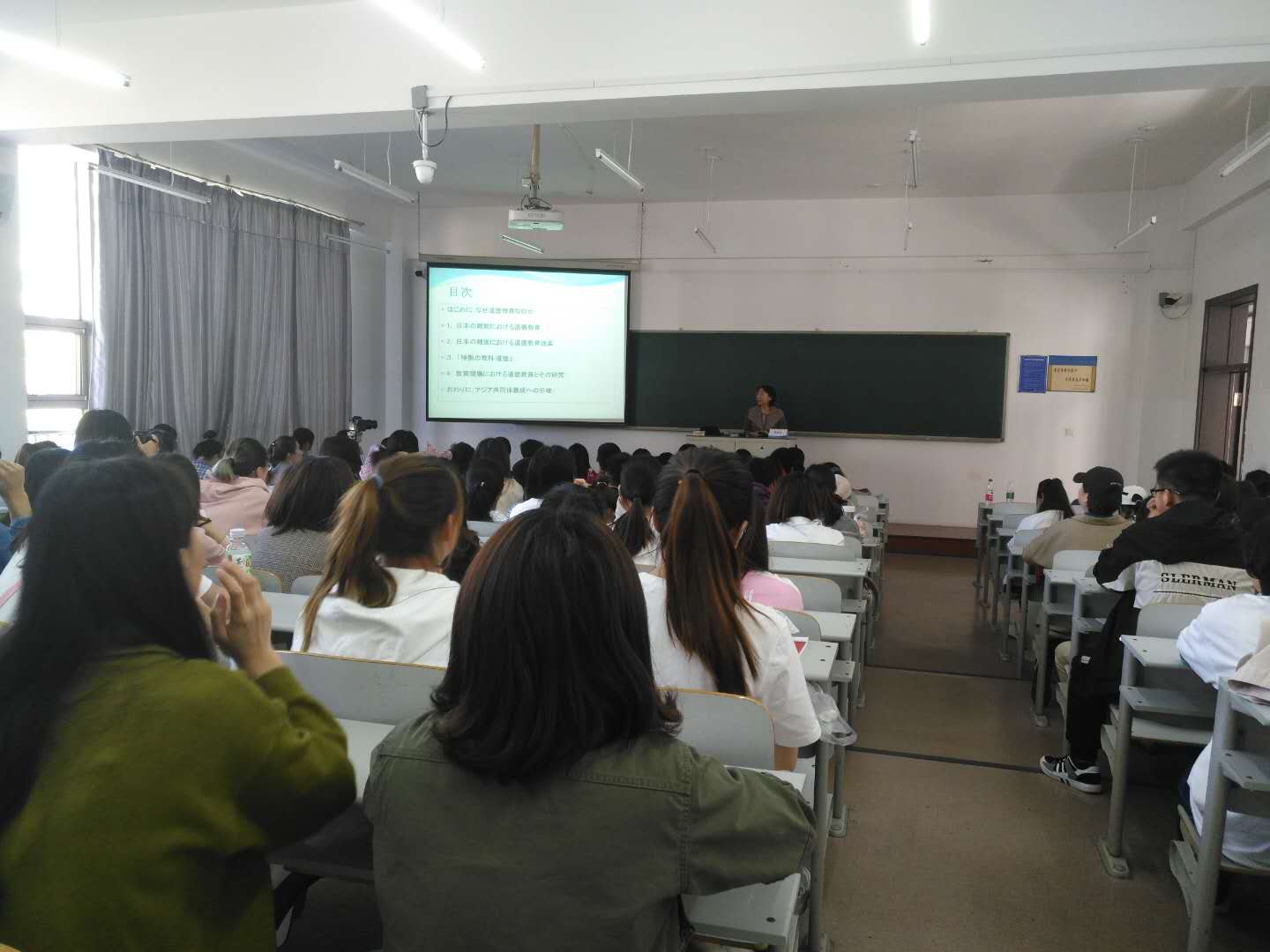 5月20日,由我校科技处主办、外国语学院承办的“亚洲命运共同体——亚洲的过去、现在和未来”大型系列学术讲座活动第九场讲座在我校獐子岛226教室开讲。本场讲座邀请的嘉宾是大连民族大学张淑英副教授。讲座由外国语学院日语教研室崔松子副教授主持,来自我校外国语学院日语专业2017级学生共计110余人聆听了讲座。