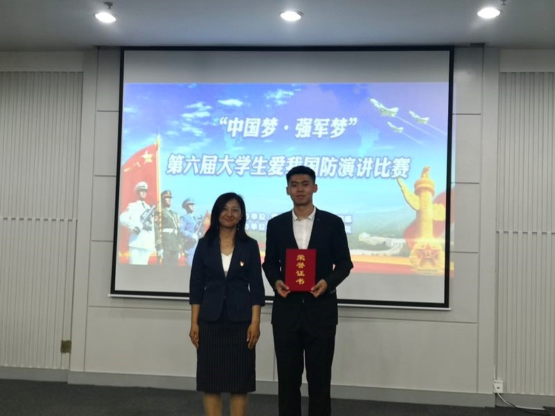 6月10日,我校“中国梦,强军梦”第六届大学生爱我国防演讲比赛决赛在图书馆多功能厅举办。麻豆视频 英语2017-4王一卓同学荣获一等奖。