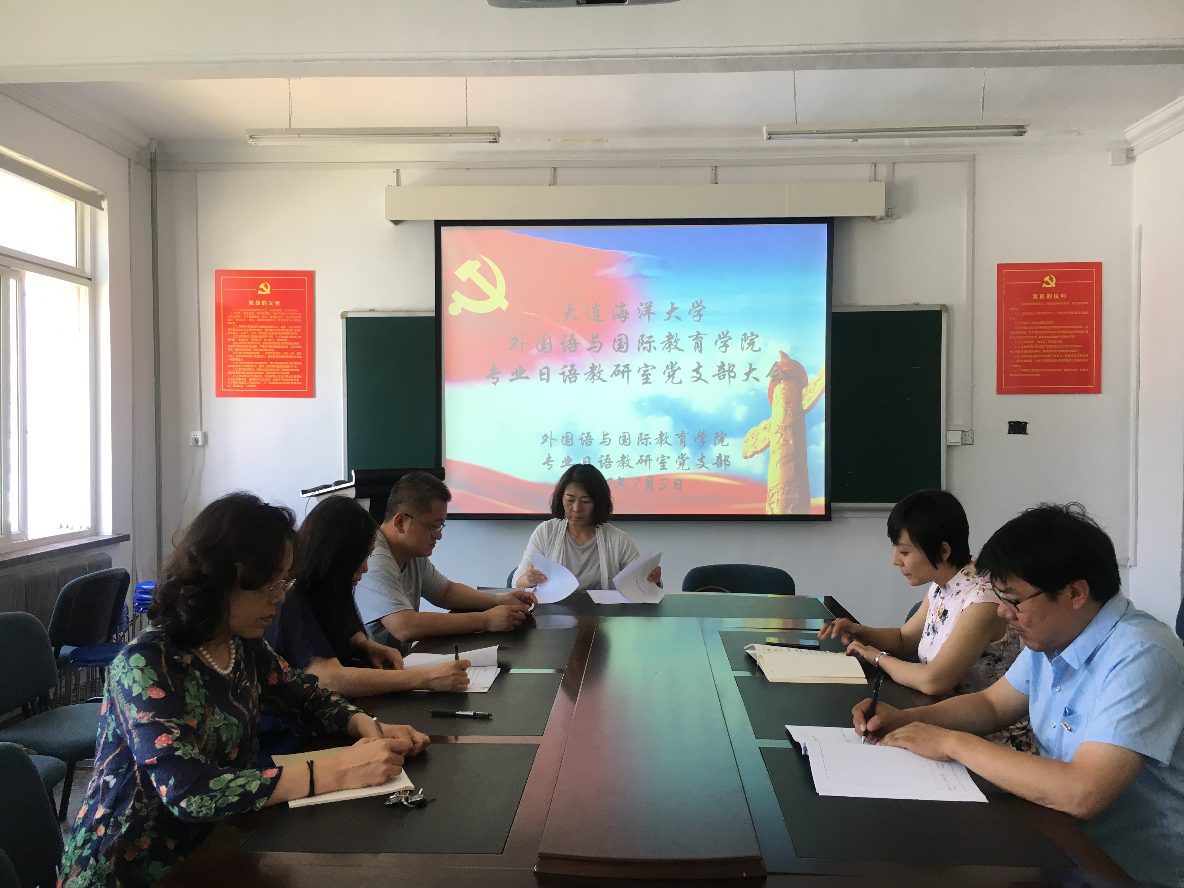 各支部先后在学院党员活动室召开党员大会,学习传达学校6月30日召开的“2019年党的建设暨全面从严治党工作会议”精神,各支部党员参加会议,会议由支部书记主持。