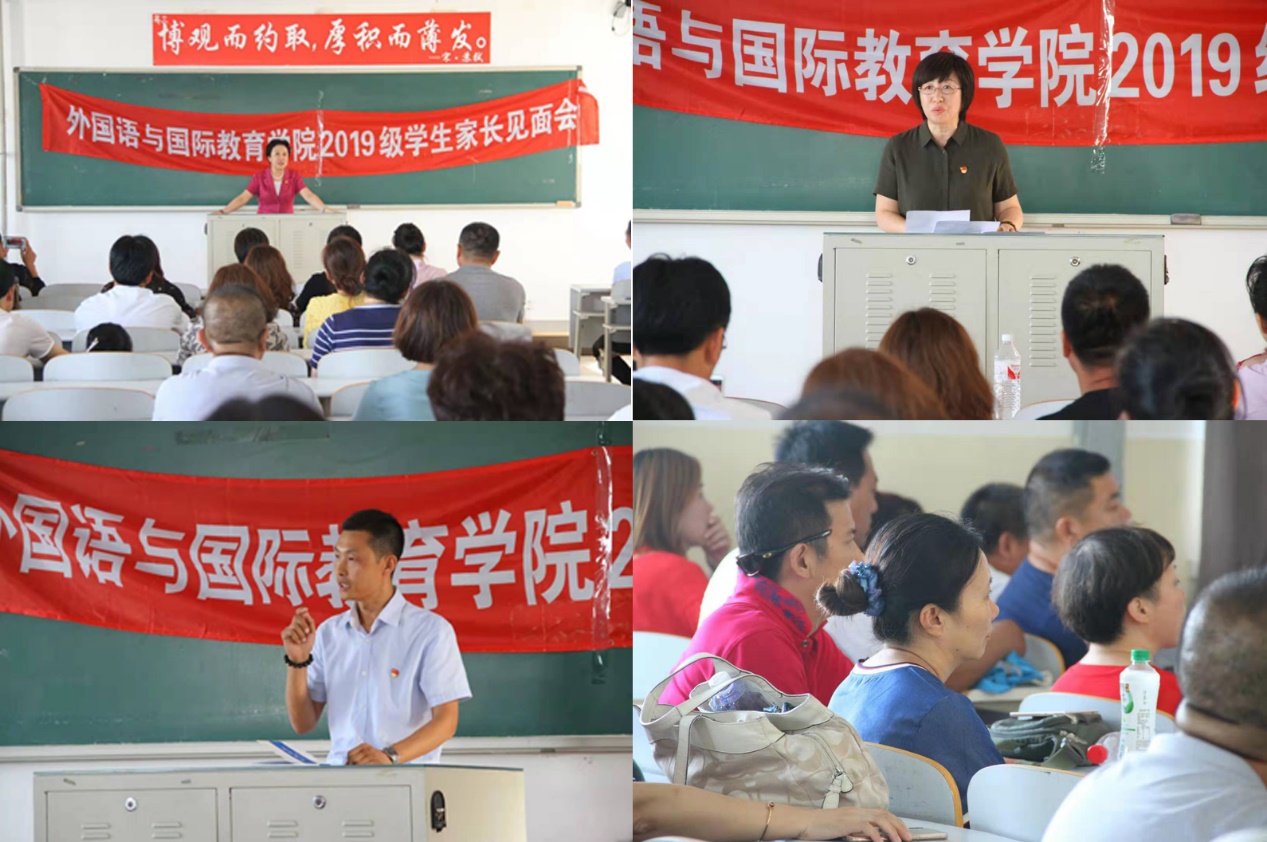会上,郭艳玲代表学院祝贺新生家长们与学生一同迈入了人生的新阶段,她就学院基本概况、发展历程、学科专业特色、毕业生就业情况等方面进行了介绍。邓艺从学生教育管理、制度体系、思想政治教育、校园文化活动、学院党团建设等方面进行详细说明,同时要求家长积极配合学院共同担负起学生成长过程中应尽的责任和义务。孙祥山对学生管理规定、新生在学习、生活等方面进行了重点强调。周宇颂就开学后近期学生有关安排及事宜进行具体说明。会后,学院领导及辅导员对于家长提出的问题进行耐心地解答。