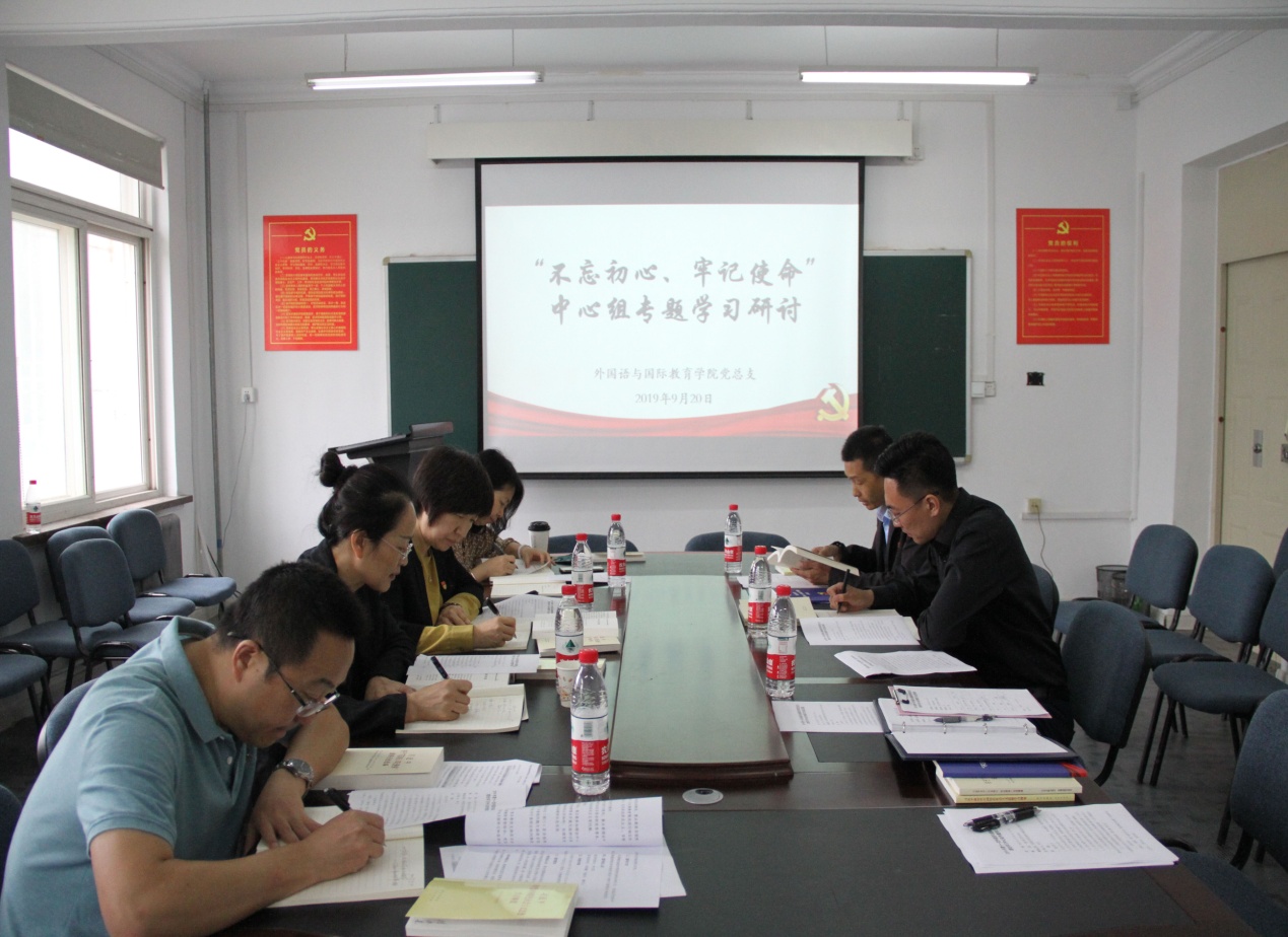 9月20日,麻豆视频 党总支理论学习中心组在学院党员活动室开展“不忘初心、牢记使命”主题教育“勇于担当作为,推动振兴发展”专题集中学习研讨。学校主题教育第二巡回指导组成员丁丽华同志列席会议,学院理论学习中心组全体成员参加学习,会议由党总支书记邓艺主持。
