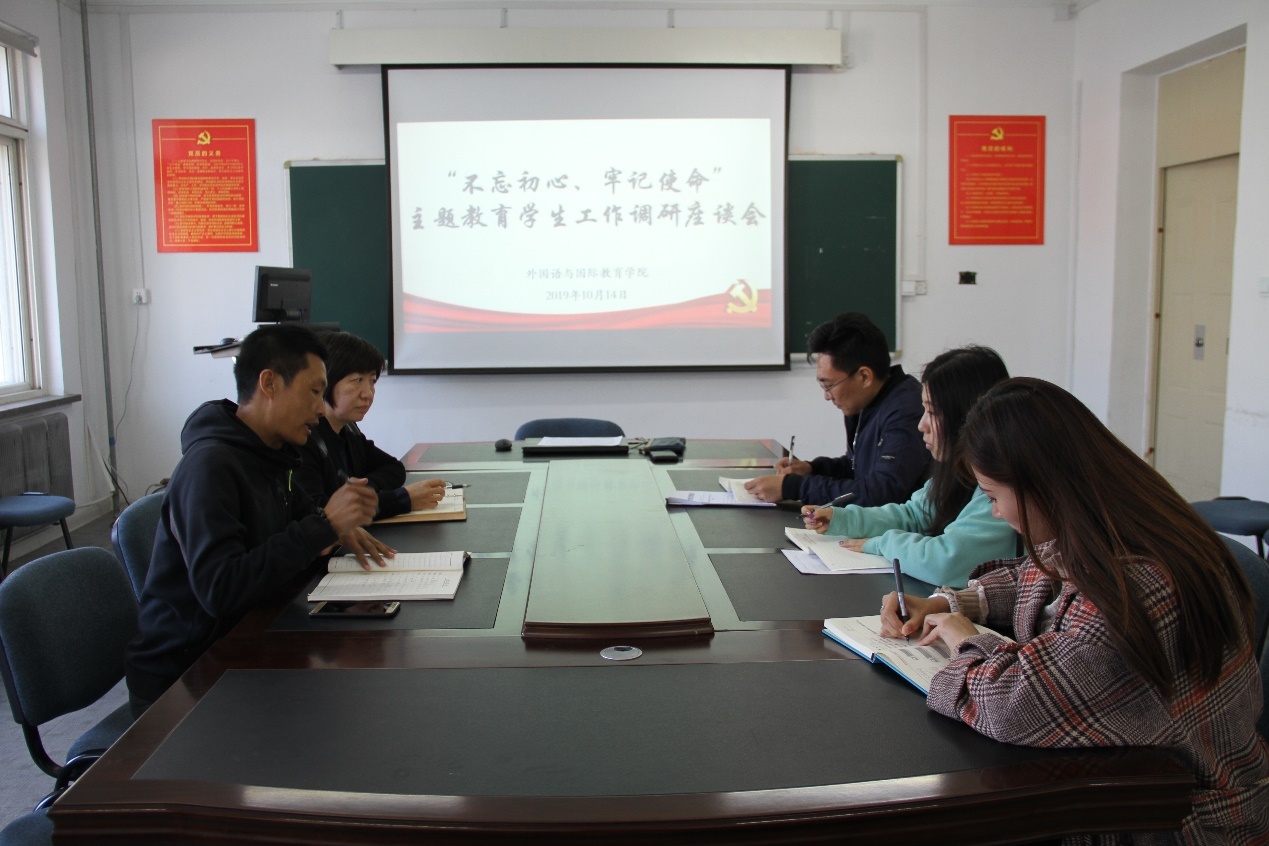 10月14日下午,麻豆视频 在党员活动室召开了“不忘初心、牢记使命”主题教育学生工作调研座谈会。学院党总支书记邓艺、副书记孙祥山、团委书记周宇颂、辅导员田源、孟美斯参会。会议由孙祥山主持。