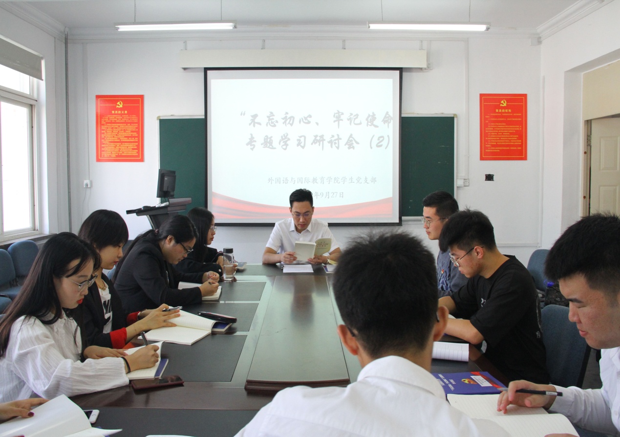 会上,与会人员集体学习了《习近平关于“不忘初心、牢记使命”重要论述摘编》中的“新时代中国共产党的历史使命”、“用习近平新时代中国特色社会主义思想武装全党”、“牢记坚定理想信念始终是共产党人安身立命的根本”等内容。在专题研讨环节,学生党员孟想,沈明昊作了重点发言。通过学习交流,支部全体党员深入领会习近平总书记讲话精神,进一步提高了在“不忘初心、牢记使命”主题教育中“守初心、担使命、找差距、抓落实”的政治自觉。