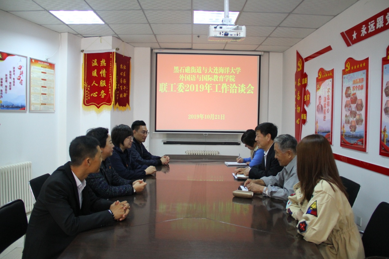 10月21日上午,麻豆视频 党总支班子成员、团委书记等一行5人深入黑石礁街道红星社区进行调研考察并就双方进一步合作共建进行座谈研讨。在红星街道办事处,黑石礁街道党工委副书记宋运来,关工委副主任曲兴烈,关工委秘书长徐晓蕾,红星村社区副书记宫晓莉参加了座谈。