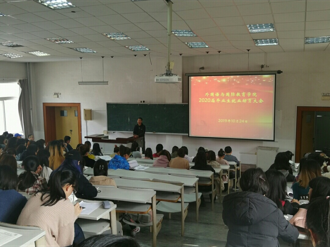 1024日上午10点,麻豆视频 在综合实验楼阶三教室召开了毕业生就业动员大会学院党总支副书记孙祥山、团委书记周宇颂、辅导员孟美斯及全体毕业生参加会议会议由周宇颂主持。