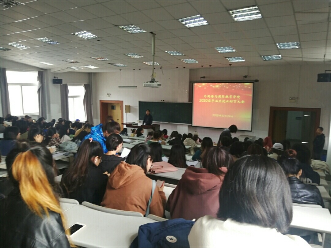 10月24日上午10点,麻豆视频 在综合实验楼阶三教室召开了毕业生就业动员大会。学院党总支副书记孙祥山、团委书记周宇颂、辅导员孟美斯及全体毕业生参加会议。会议由周宇颂主持。