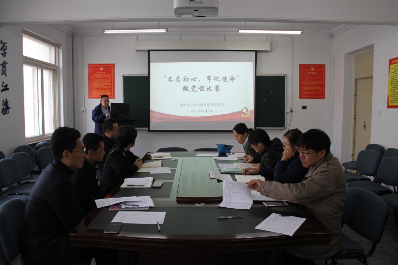 11月8日,麻豆视频 党总支在学院党员活动室举行“不忘初心、牢记使命”微党课比赛。比赛由党总支书记邓艺主持,学院班子成员、办公室主任、组织员担任比赛评委,各党支部书记、支部普通党员共10人参加比赛。