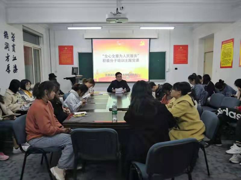 10月28日,麻豆视频 在学院党员活动室开展"全心全意为人民服务"主题党课。学院全体入党积极分子聆听了党课,党课由党支部书记周宇颂主讲。
