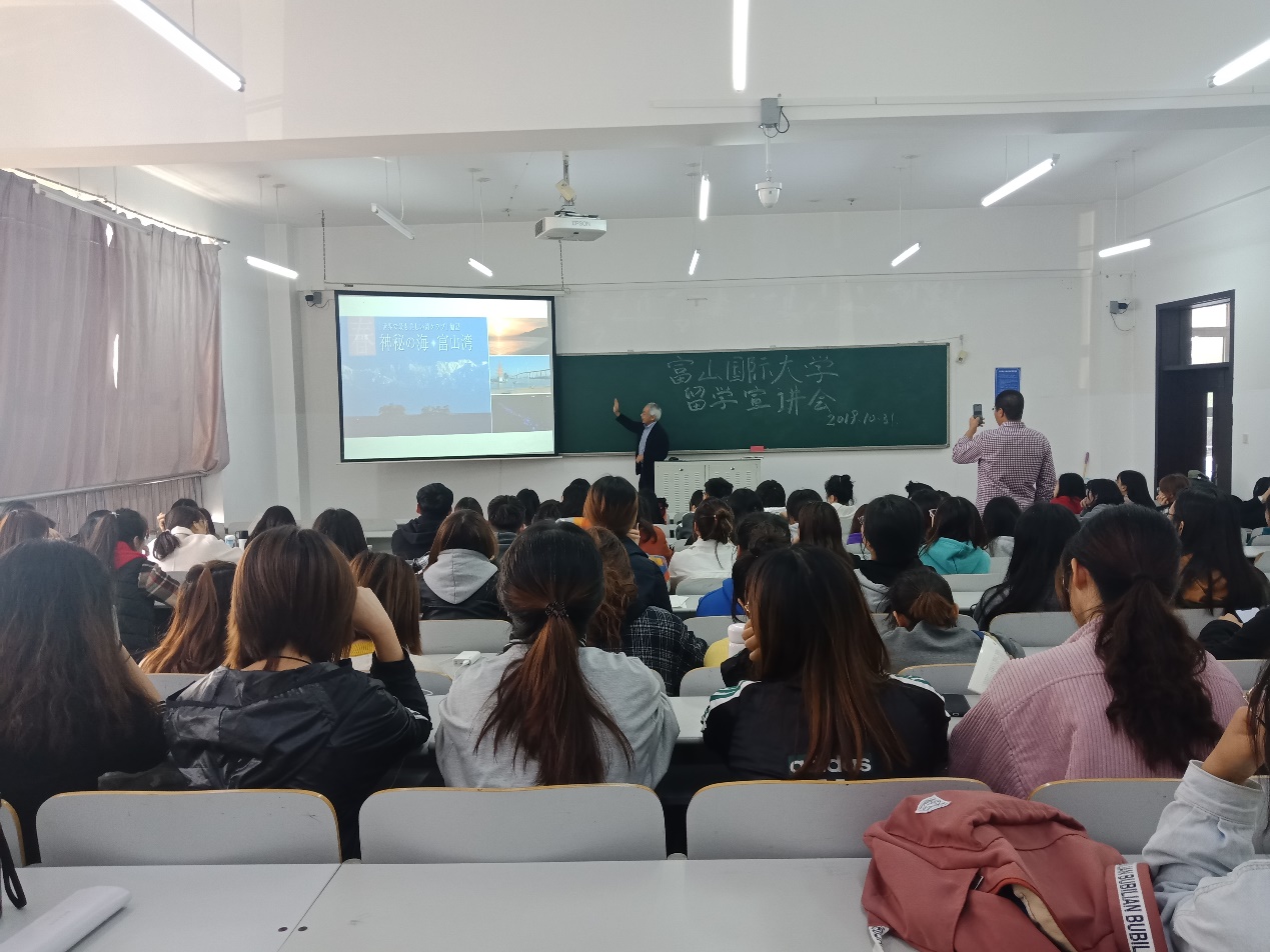 10月31日,麻豆视频 在獐子岛教学楼132召开富山国际大学出国项目宣讲会。富山国际大学校方代表、学院专业教师以及学院2017级、2018级有出国意向留学学生参加了此次宣讲会。