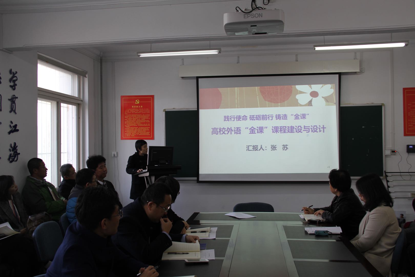 会上,张苏、王倩、张艺玲、李光敏、陈烽、曲凤鸣、颜景义7位老师重温了天津“金课”培训班的内容,着重介绍了“金课”建设的背景及其内涵,对“金课”的定义、类型和建设方法进行了系统的阐述,使全院教师对“金课”的三大特点“高阶性、创新性和挑战度”有了更加清晰的认识。随后,全院教师就如何打造外语学科“金课”主题,从人才培养目标、教学内容改革、教学模式改革、实践教学改革、教学团队建设等方面进行了深入的探讨,对如何破解存在的问题及今后“金课”建设提出了有益的意见和建议。