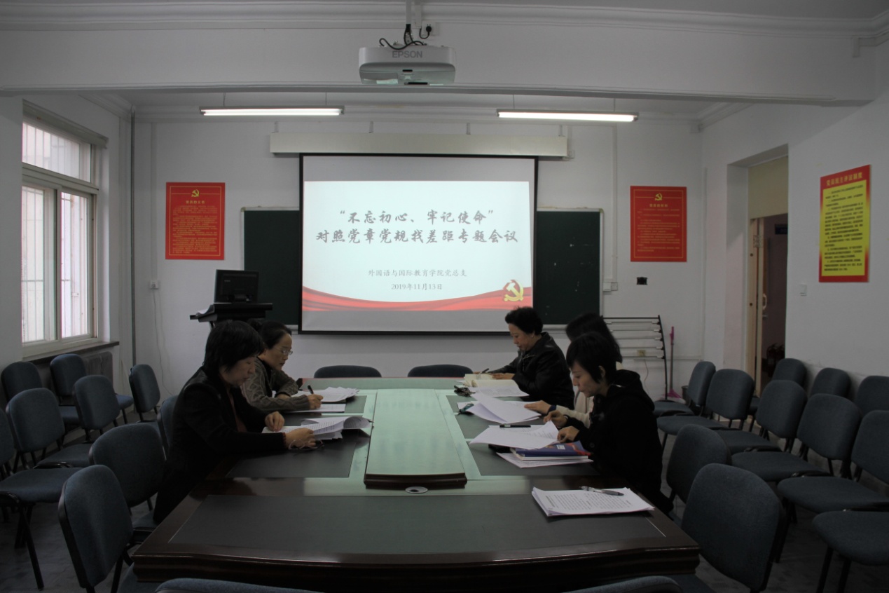 11月13日,麻豆视频 党总支在学院党员活动室召开“不忘初心、牢记使命”对照党章党规找差距专题会议。学校主题教育第二巡回指导组成员丁立华出席会议,学院副处级以上党员领导干部参加会议。会议由党总支书记邓艺主持。
