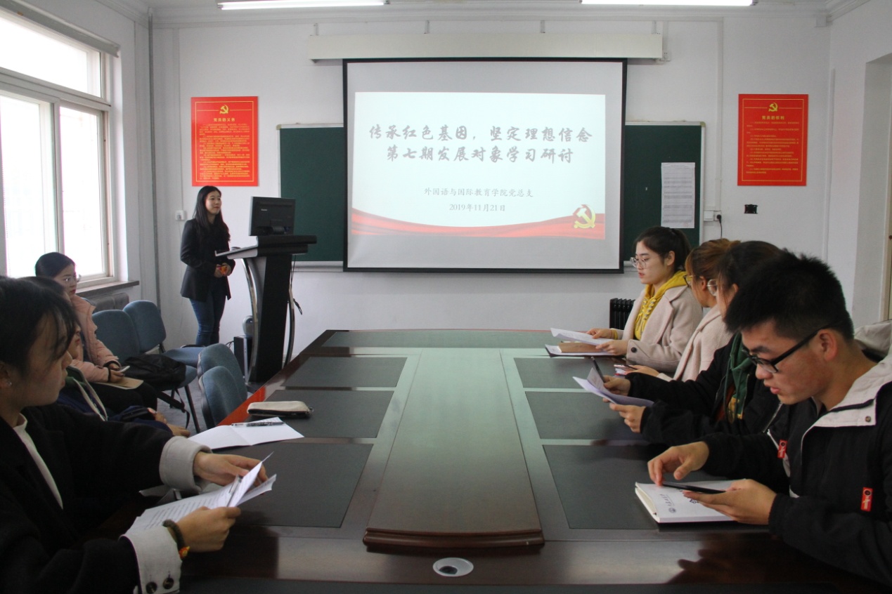 党总支在1教206党员活动室开展第七期发展对象学习研讨。学习研讨由组织员田源主持,学院第七期发展对象参加学习。