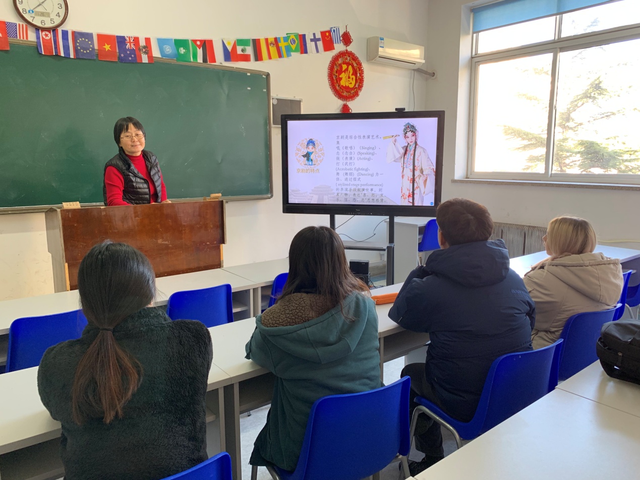 2019年11月28日下午,对外汉语教研室党支部在留学生楼3-3教室举办了题为《中国传统文化——中国戏曲》的讲座。讲座由对外汉语党支部书记罗音老师主讲,全体来华留学生参加了讲座。