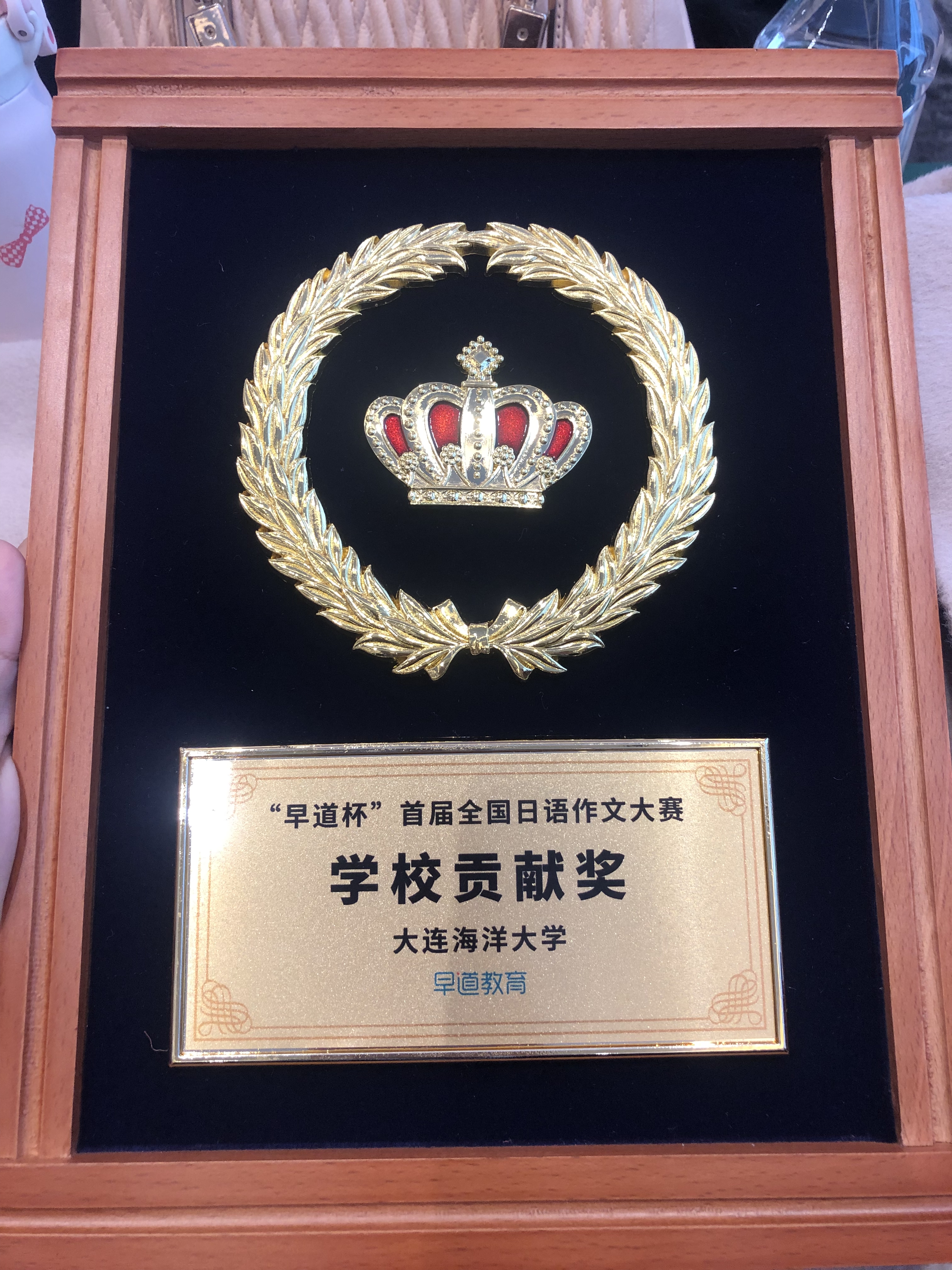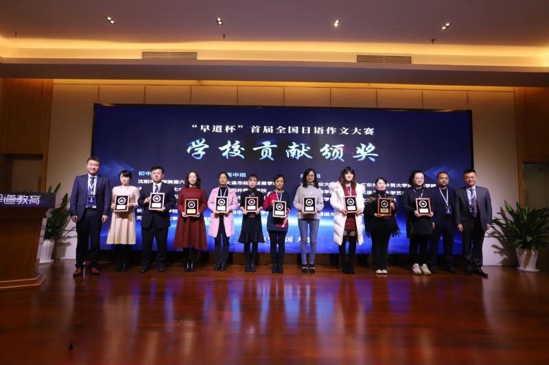 近日,“早道杯”首届全国日语作文大赛落幕。麻豆视频 组织日语专业学生近150人参加了比赛,经过评比,日语专业2019级李尧、2017级李婷、2016级肖瑞瑞等三名同学的作品在1196篇作文中脱颖而出,顺利通过初审,进入前三十名,我校获得学校贡献奖。日语专业张苏、黄桂峰、崔松子三位教师参加了颁奖典礼。