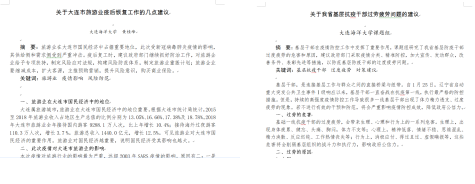专业日语教研室党支部号召党员教师撰写咨政建议。疫情发生以来,辽宁省科学技术协会和大连市社科联分别发出通知,征集疫情防控相关咨政建议。黄桂峰同志将科研工作与现实问题紧密结合,撰写了《关于大连市旅游业疫后恢复工作的几点建议》、《关于我省基层抗疫干部过劳疲劳问题的建议》,为此次受到严重冲击的大连市旅游业的疫后恢复工作以及防范基层防疫干部的过度疲劳问题,提出了对策建议,体现了高校党员教师高度的社会责任感。