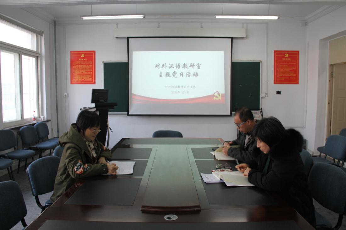 1月8日,麻豆视频 对外汉语教研室党支部全体党员在一教206党员活动室开展1月主题党日活动。活动由党支部书记罗音主持。