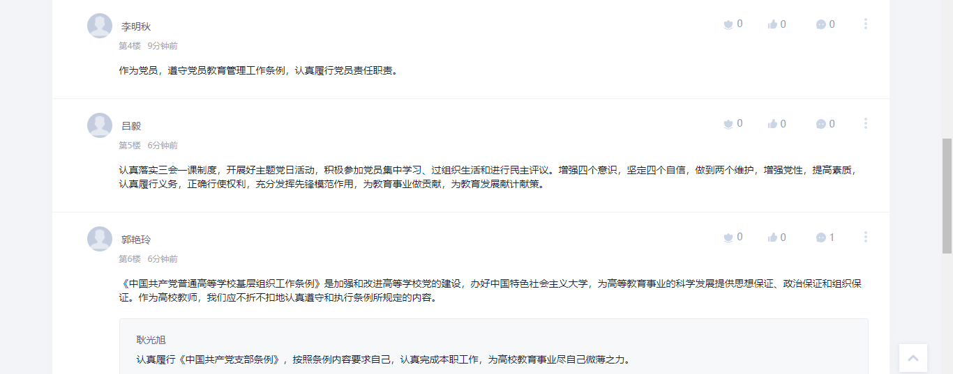 会上,各党支部书记领学了《中国共产党支部工作条例(试行)》、《中国共产党党员教育管理工作条例》和《中国共产党普通高等学校基层组织工作条例》,并对学习重点内容进行了解读。在交流研讨环节,大家一致认为,党内工作条例是新时代党员教育管理工作的基本遵循,是全体党员的行为规范和行动准则,对于牢固树立党规党纪意识、推动全面从严治党向纵深发展具有重要意义。