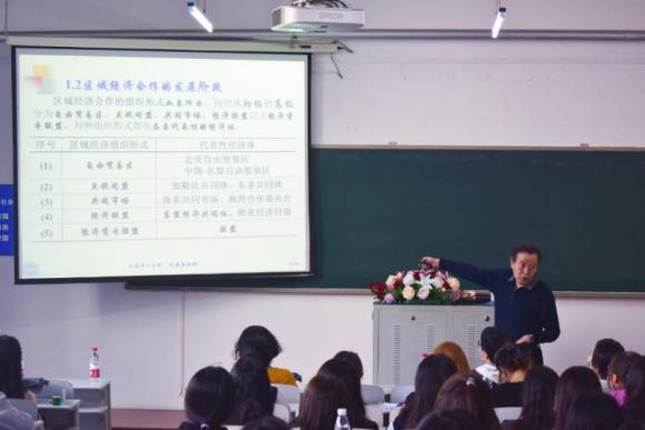迟国泰教授以“区域经济一体化的实践与展望”为题,从区域经济合作与经济一体化、欧盟的经济一体化、东亚共同体的理想与实践、“一带一路”的建设与发展等四个方面,为在座师生详细分析了区域经济合作发展的历史过程及现状。在区域经济合作和经济一体化方面,迟教授介绍了二战之后区域一体化的四次浪潮以及区域经济合作的发展阶段、经济一体化的组织形式及其特点;关于一体化程度最高的区域性组织-欧盟,他用详细的数据介绍了其GDP总量以及欧盟经济的发展情况;在东亚共同体的理想与实践方面,他介绍了东南亚国家联盟、东盟与中日韩(10+3)区域合作、中国-东盟自贸区的发展;关于“一带一路”,他阐述了丝绸之路经济带重点和21世纪海上丝绸之路重点方向、“一带一路”的内涵及未来展望。整场讲座,迟教授用生动的社会事件、现象以及生活文化的区域差异深入浅出地讲述了区域经济一体化的发展与实践的意义。