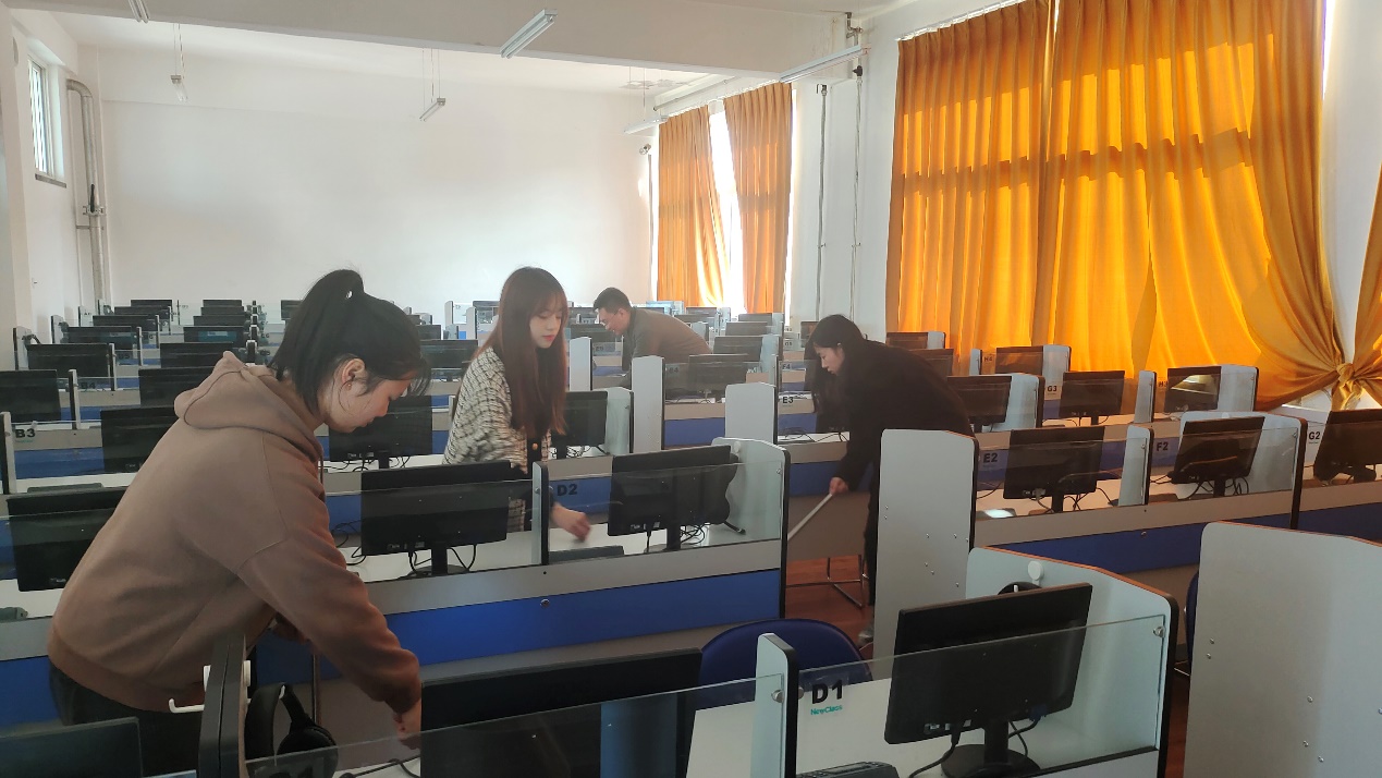 活动中,师生们在各支部书记的带领下,分工负责、积极行动,对我校黄海校区、渤海校区全部14个语音室及周边公共走廊进行了彻底的清扫和消毒,清除了语音室积存的灰尘垃圾,做到无卫生死角。活动使学院教学环境得到提升,有效增强了师生们的环境卫生意识和疫情防范意识。