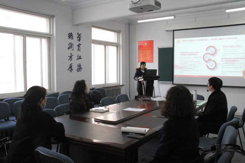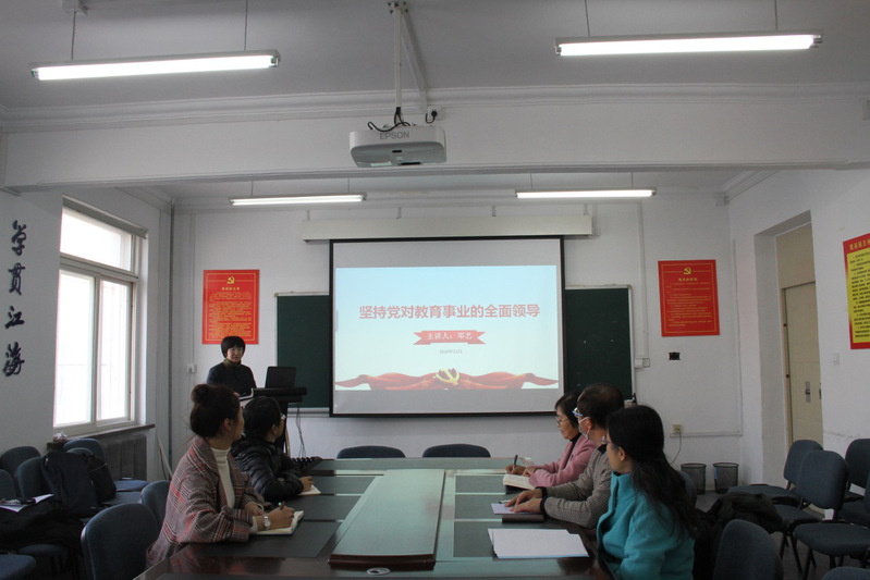 11月25日,院长郭艳玲在联系支部主讲了以“不忘初心、牢记使命,对党忠诚,教书育人”为题的党课。她带领全体党员回顾了我党创立以来艰苦卓绝的历程,以及中国共产党员在党中央的领导下在不同历史时期为中国的建设和发展做出的贡献。她指出,作为党员,要坚定不移维护党中央权威和集中统一领导,自觉在政治立场、政治方向、政治原则、政治道路上同党中央保持高度一致,以习近平新时代中国特色社会主义思想为指导,坚持立德树人,补短板强弱项,把思想政治工作做在日常、做到个人。