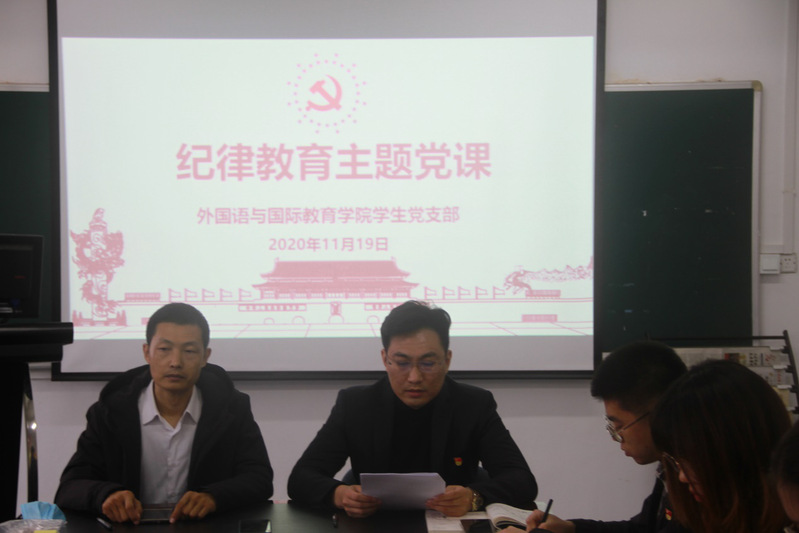 11月19日,学生党支部书记周宇颂以“严守政治纪律和政治规矩”为题,从加强纪律建设是我们党应对新考验的必然要求、强调政治纪律是马克思主义政党的本质特征、保证纪律的应有作用得到充分发挥三个方面进行论述,号召支部党员严守政治纪律和政治规矩,在学习、工作、生活中,积极发挥党员先锋模范作用,展现党员应有的责任与担当。
