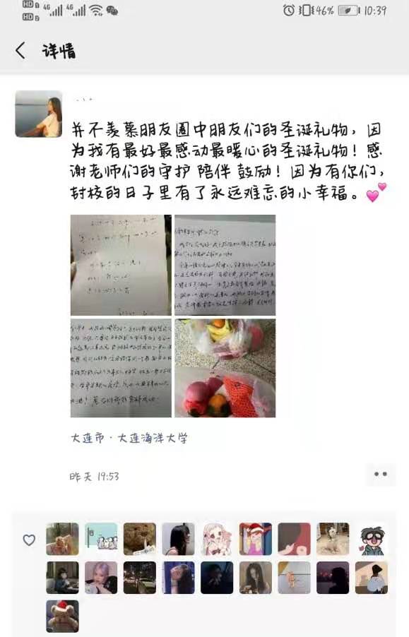 及时为同学们送去问候、鼓励与安慰