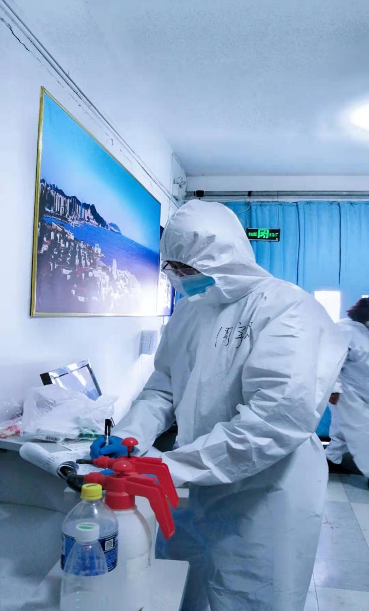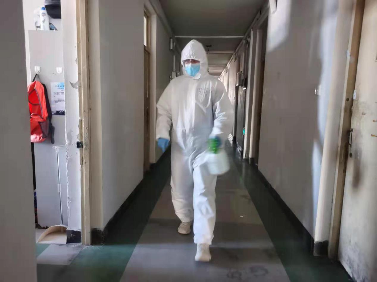 学院团委书记周宇颂老师在渤海校区公寓开展抗疫工作