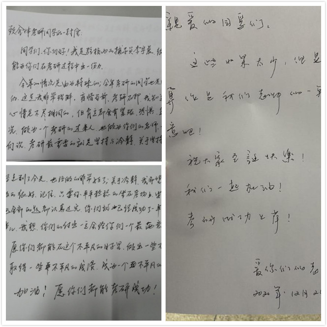 老师手写书信为考研学生加油打气