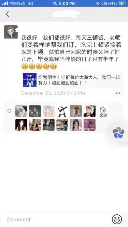 麻豆视频 有这样一群逆行者,他们把学生生命健康放在首位,舍小家顾大家,第一时间进入宿舍。针对学生在宿舍隔离的实际困难,积极给予同学们生活及学习上的各种帮助,为学生配送一日三餐,采购必要的生活物资,及时回应学生关切,关心学生的身心健康,始终坚守抗疫一线,用大爱筑起战疫堡垒,成为学院699名在校学生的“守护神”。