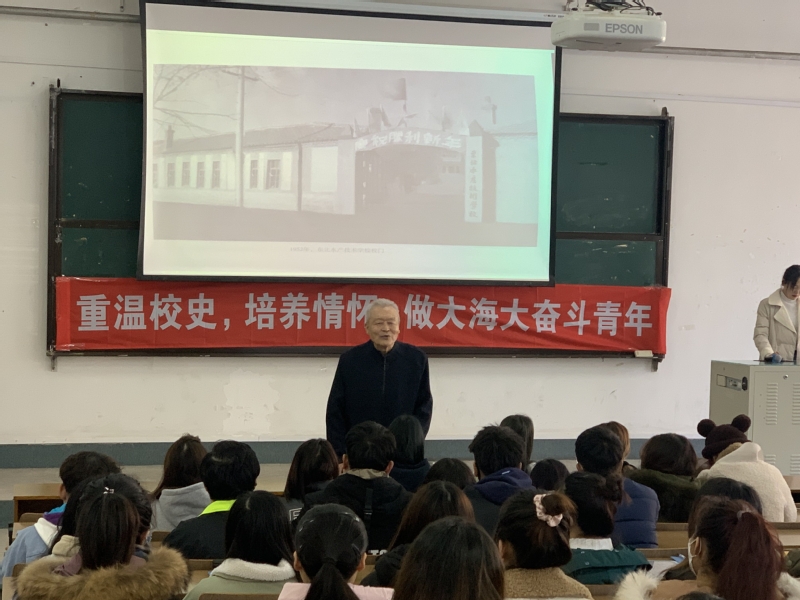 在讲座中,张耀林老师以“学习前辈的创业精神刻苦攻读,继承大海大的光荣传统奋力攀登”为题,通过展示丰富的图文资料,声情并茂的讲述了学校各个历史时期的发展历程,使学生们真切地感受到学校的历史变迁和奋进历程,激励在场的每名学生立志向前辈们学习,成为学校的骄傲,国家的栋梁。