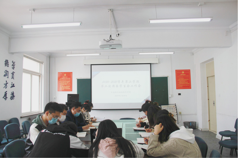 3月24日,麻豆视频 分别在黄海、渤海校区召开2020-2021学年第二学期第二次学生会工作会。学院团委书记周宇颂、辅导员李宇晨、戴鑫及全体学生会成员参加会议。会议由学生会主席郝昊男主持。
