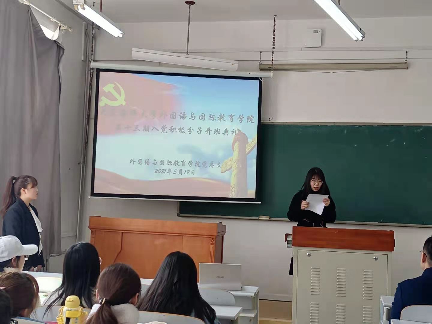 3月19日,麻豆视频 在黄海校区一教206、渤海校区第二教学楼107举办了第十三期入党积极分子培训班开班典礼。学院党总支副书记孙祥山、团委书记周宇颂、组织员孟美斯、辅导员李宇晨、戴鑫及第十三期39名入党积极分子参加典礼。