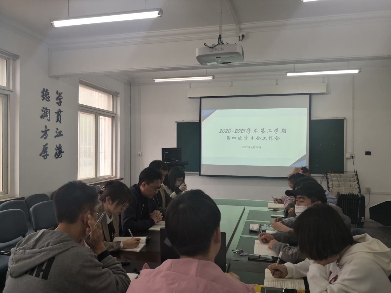 4月22日,麻豆视频 分别在黄渤海校区召开2020-2021学年第二学期第四次学生会工作会。学院团委书记周宇颂、辅导员李宇晨、戴鑫及全体学生会成员参加会议。会议由院学生会主席郝昊男主持。