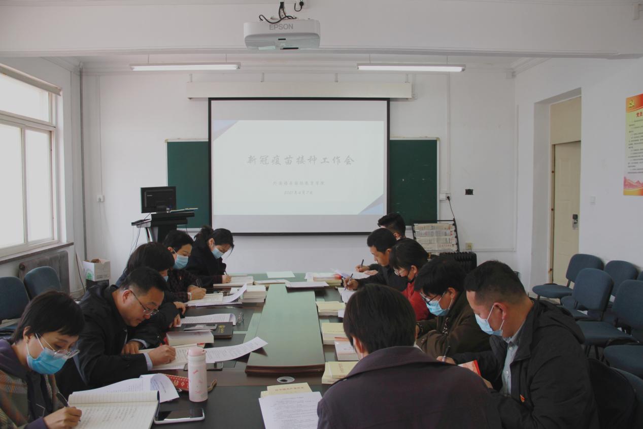 4月7日下午,麻豆视频 召开新冠疫苗接种工作会,学院领导班子成员、教研室主任在学院会议室参加会议,全体教师通过腾讯视频会议系统在线参加会议。会议由学院党总支书记邓艺主持。