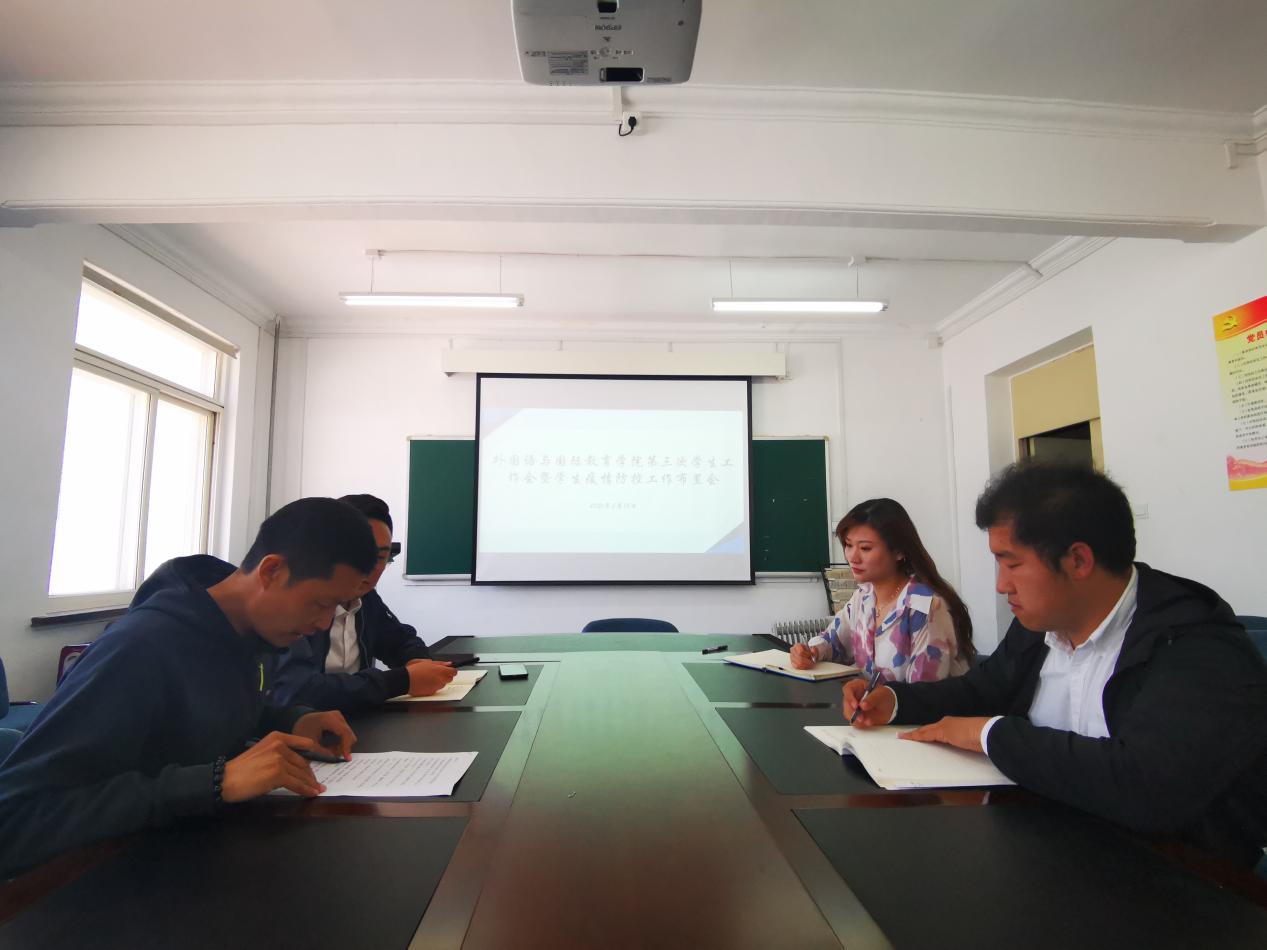 在学院206会议室召开了2020-2021学年第二学期第四次学生工作会暨学生疫情防控工作布置会。学院团委书记、全体辅导员参加会议,学院党总支副书记孙祥山主持会议。