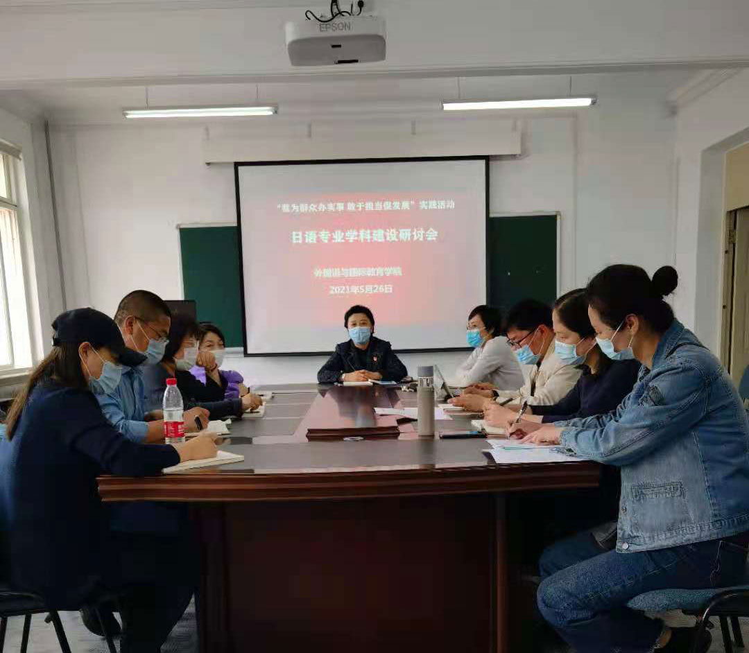 在学院206会议室召开了“我为师生办实事 敢于担当促发展”实践活动日语专业学科建设座谈会。会议由院长郭艳玲主持,日语教研室全体教师参加。