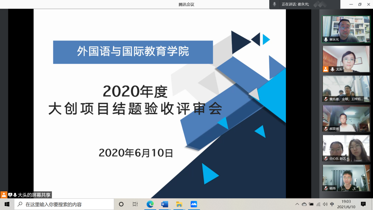 6月10日晚7点,麻豆视频 2020年大学生创新创业项目结题评审会在腾讯会议线上举行。由学院领导班子成员、各教研室主任和副主任组成的学院创新创业训练计划项目评审工作组对课题进行了评议和指导。
