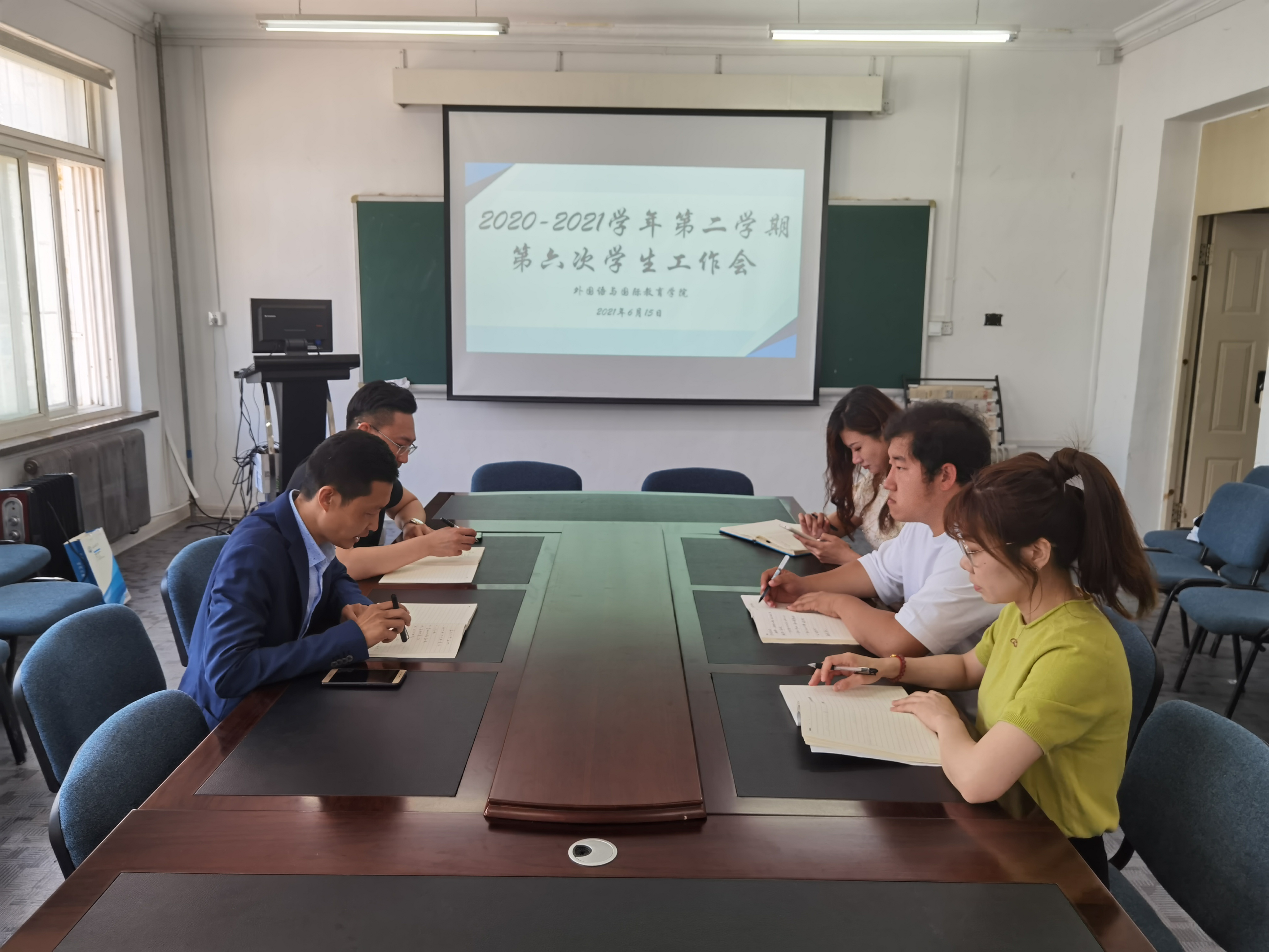 会上,孙祥山对即将开展的各项工作进行了安排布置。他表示,我们应该重视“易班”建设,提升其使用率;对即将开展的“外文配音大赛”,要做好各环节的协调工作,充分准备,保证活动的顺利开展;继续落实好“朝阳支教”的相关工作。