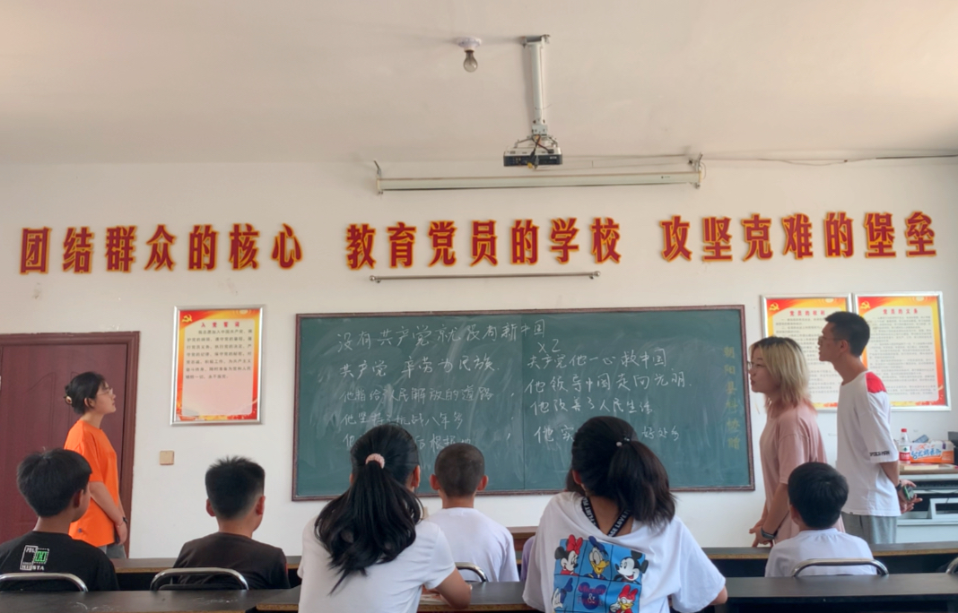 党总支选派师生党员、学生干部组成支教团,赴朝阳市朝阳县北四家子乡唐杖子村,开展“助力学子、圆梦青春”暑期支教先锋行精准帮扶活动。本次支教活动自7月16日开始, 7月31日结束。参加人员共13人,包括带队教师2人、线下支教团4人、线上支教团7人。学院党总支副书记孙祥山、团委书记周宇颂在活动期间前往看望支教团成员和当地学生。