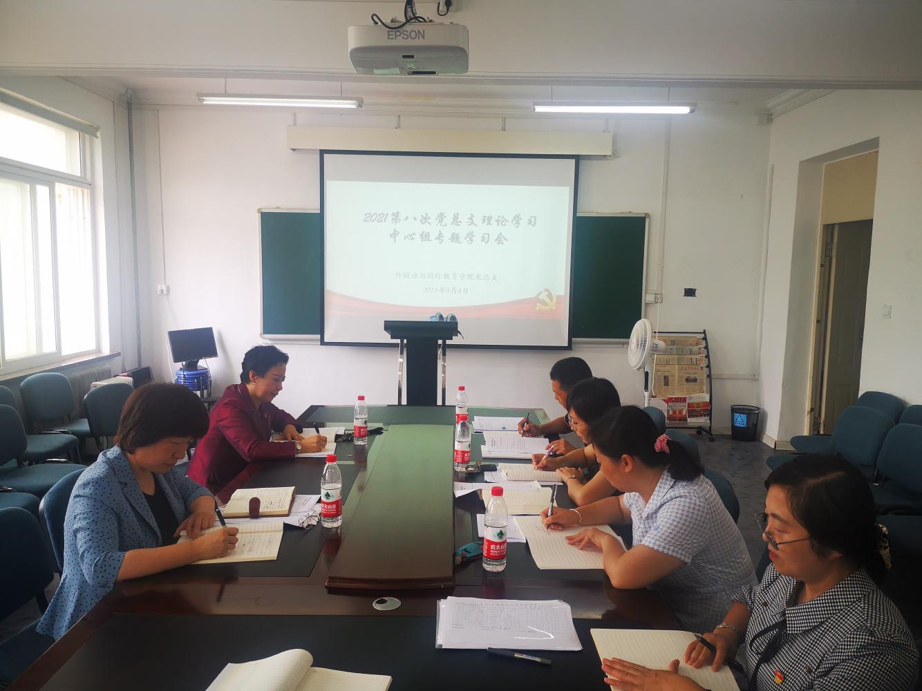 党总支在学院党员活动室召开2021年第八次党总支理论学习中心组学习会。学院党总支理论学习中心组成员参加会议。会议由党总支书记邓艺主持。
