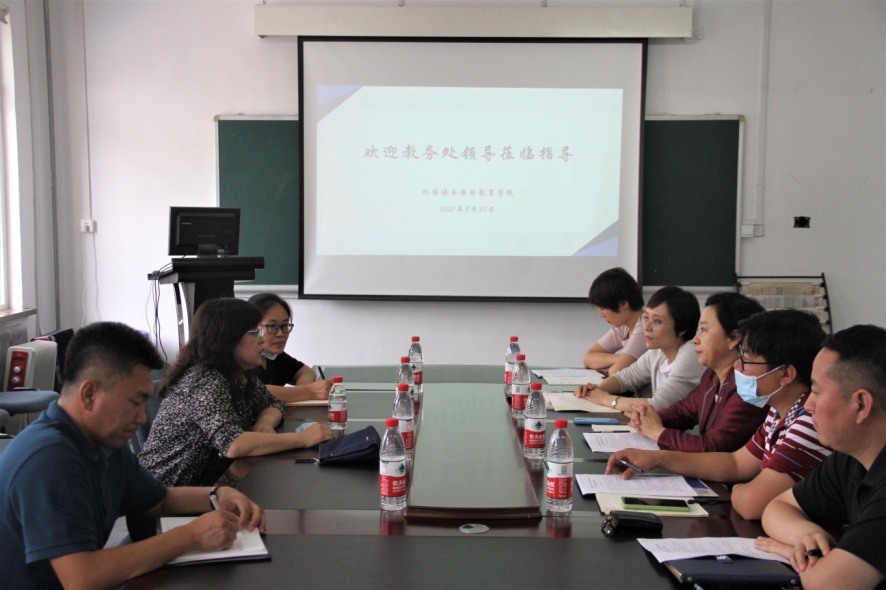 8月31日下午,教务处处长田春艳、副处长高胜哲、教务科科长许桂娟一行三人到麻豆视频 调研2021级新生在线教学准备工作。麻豆视频 院长郭艳玲、副院长张苏、教研室主任张莹、黄桂峰、韩国崇参加了座谈。