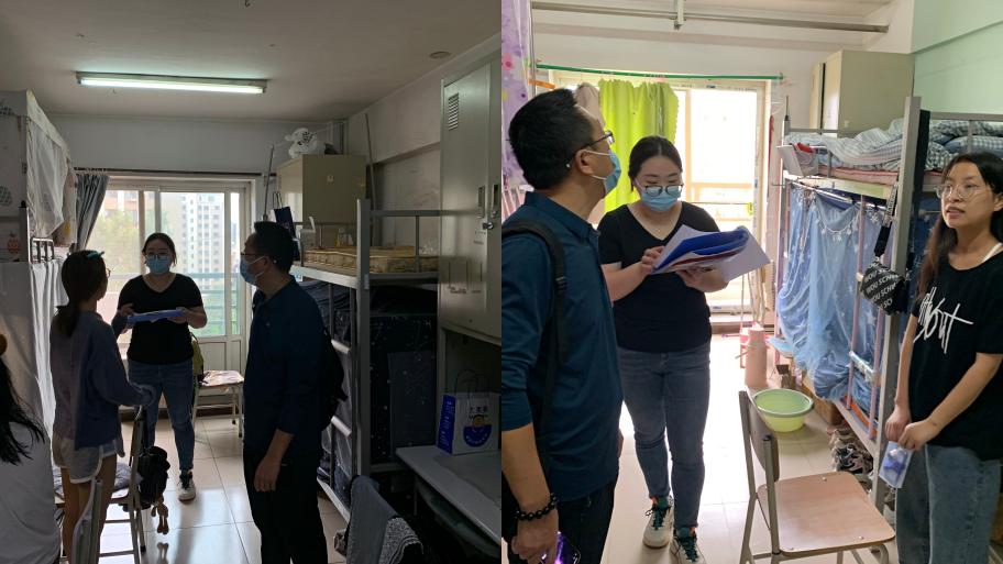 2021年9月26日上午,崔永光、黄韵婷深入学生寝室开展寝室卫生及安全检查。对检查中发现的插排使用不当等情况进行了安全提示,要求立即整改。