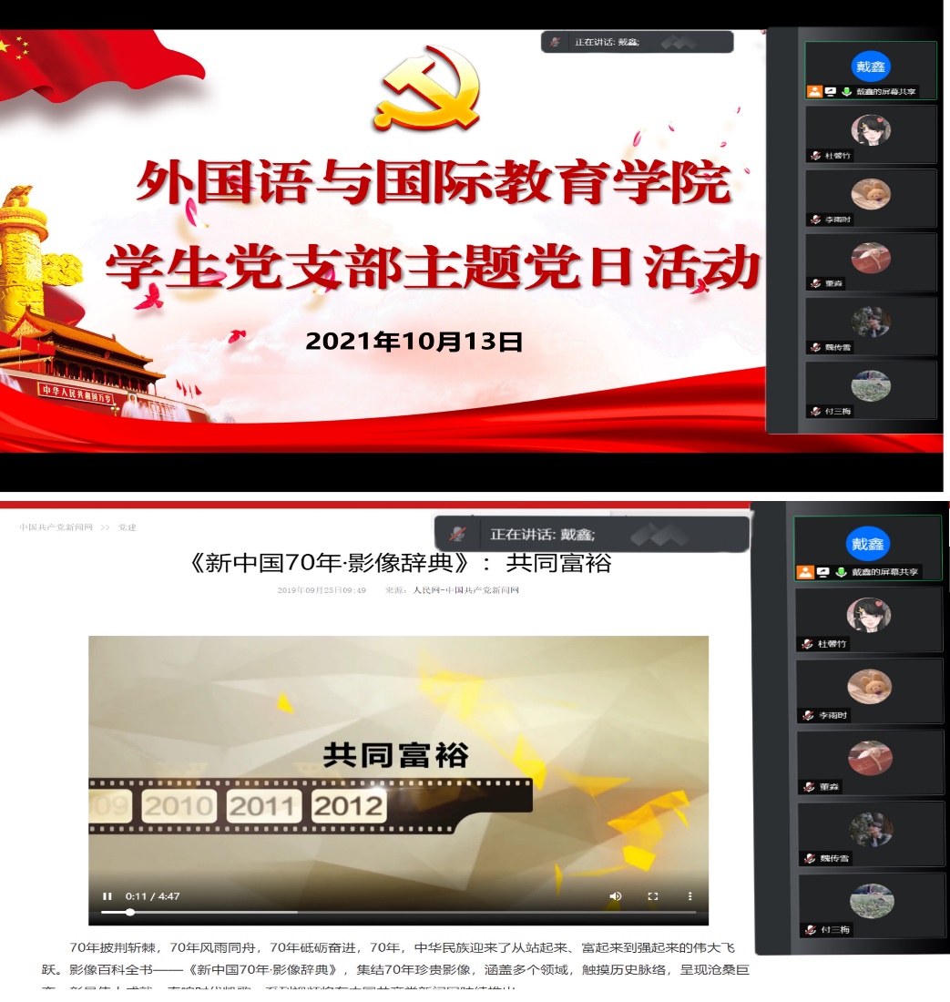 学生党支部通过线上方式开展10月主题党日活动。支部全体党员参加会议,会议由支部书记戴鑫主持。