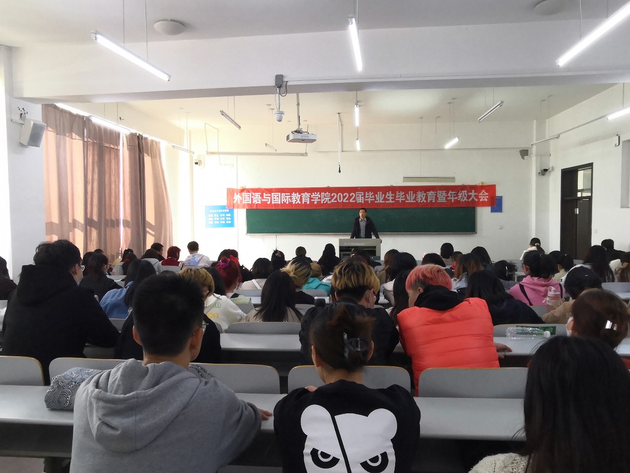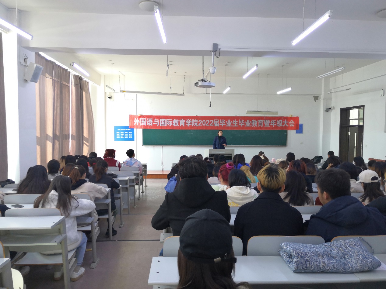 在獐子岛教学楼123教室召开了2022届本科毕业生毕业教育暨年级大会。学院党总支副书记孙祥山、副院长王倩及全体2022届毕业生参会。会议由孙祥山主持。
