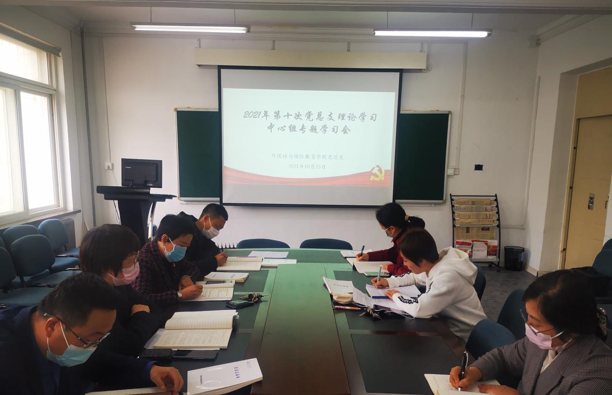 党总支在学院党员活动室召开2021年第十次党总支理论学习中心组学习会。学院党总支理论学习中心组成员参加会议。会议由党总支书记邓艺主持。