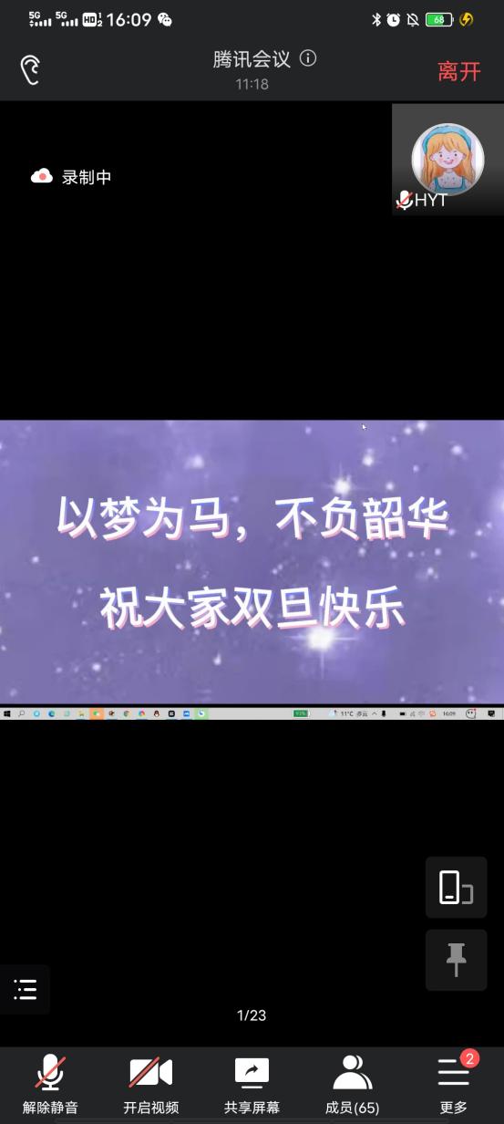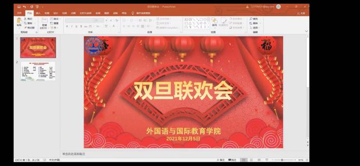 伴随着动感的音乐、欢快的节拍、幽默的桥段,麻豆视频 2021年研究生双旦晚会于2021年12月5日15:00在腾讯会议线上举行。参加本次晚会的有学院副书记崔永光、教学副院长王倩、辅导员黄韵婷、教学秘书李祉晔以及全体研究生。本次晚会由学院研究生会筹办。