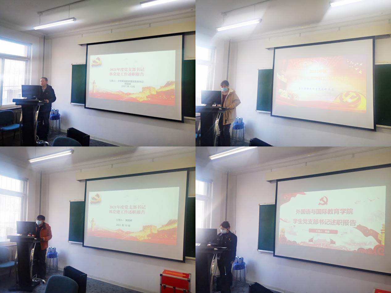会上,党支部书记韩国崇、张莹、黄桂峰、戴鑫先后总结了一年来党建工作履职情况,围绕2021年度全年党建工作开展的情况、取得的成效、存在的问题和下一步工作思路进行汇报。