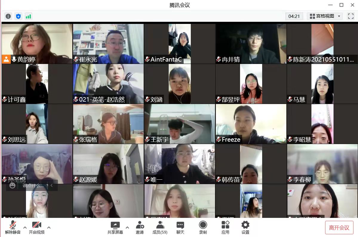 为贯彻落实学校疫情防控要求,做好新学期开学准备,3月4日,麻豆视频 召开了线上研究生年级大会。学院党总支副书记崔永光、辅导员黄韵婷、2020级、2021级全体研究生参加会议。会议由辅导员黄韵婷主持。