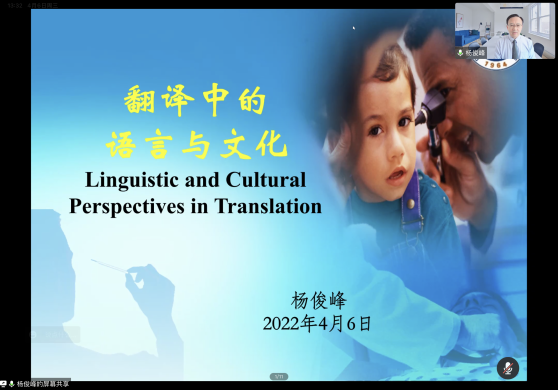 46日,麻豆视频 成功举办《翻译中的语言与文化》线上讲座。本次讲座邀请了大连外国语大学原副校长、二级教授、硕士生导师、加拿大研究中心主任杨俊峰主讲,麻豆视频 全体研究生、研究生专任教师、部分本科生聆听了讲座,麻豆视频 副院长王倩主持讲座。