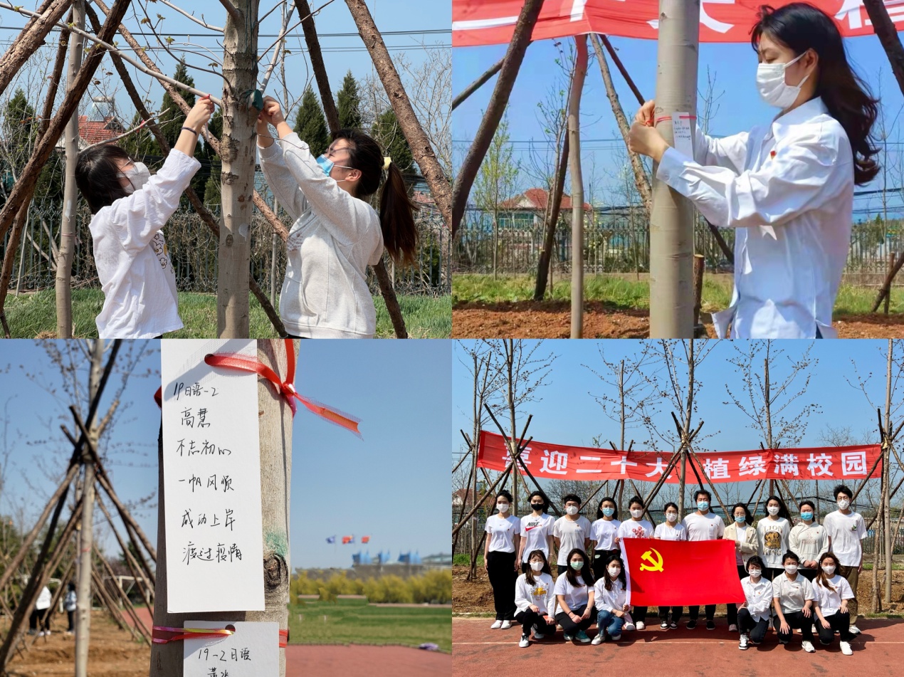 理论学习后,渤海校区党员参加了“喜迎二十大,渤海岸边植红枫”世界地球日树木认养活动,通过树木认养、寄语挂牌、条幅签字等方式营造植绿、护绿、爱绿、兴绿的良好风尚,表达了与树木同成长的爱校情怀,强化了党员生态文明意识。